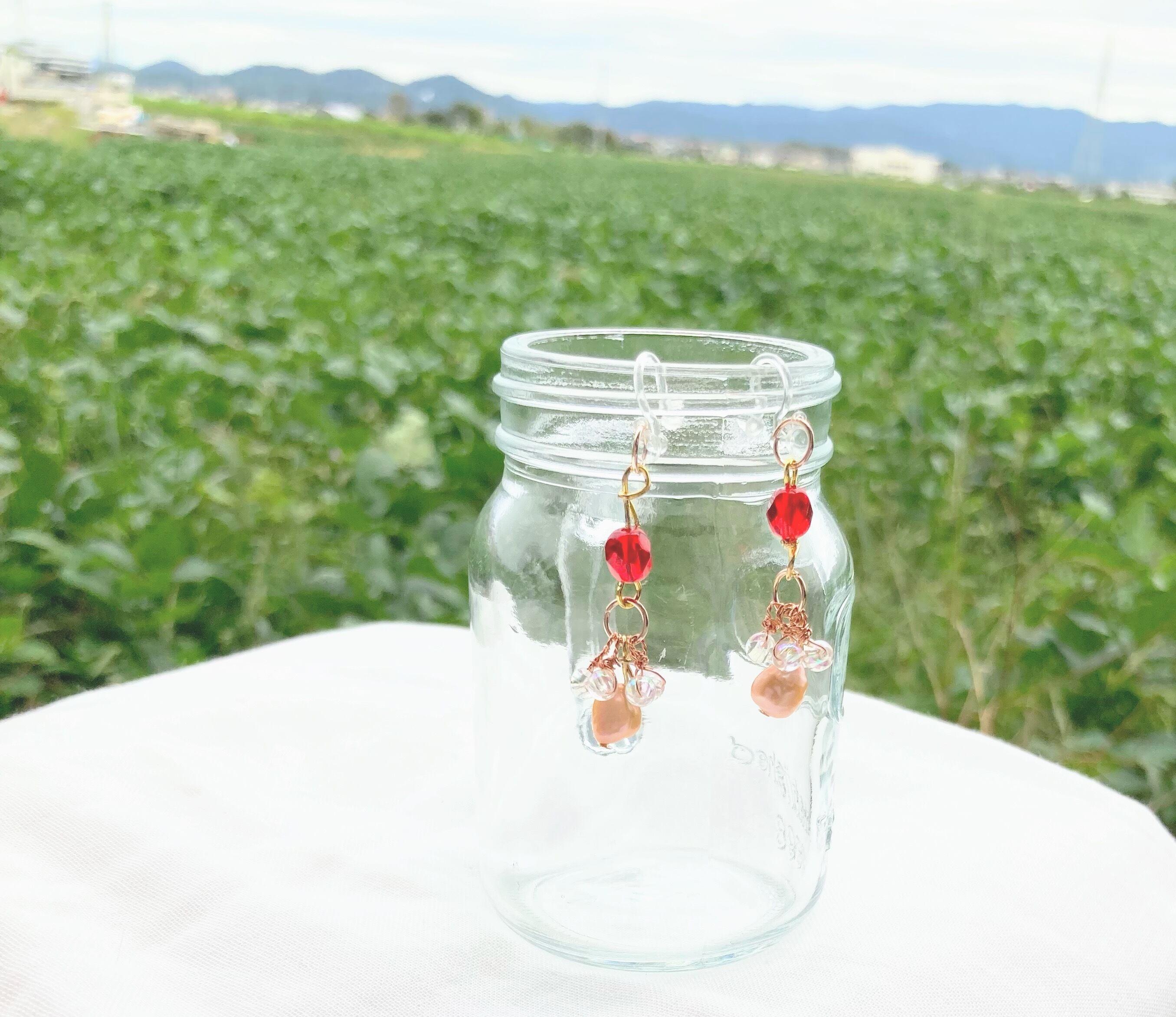 ライトシャム系 ダイヤカットのチェコビーズは赤く美しい輝きです。