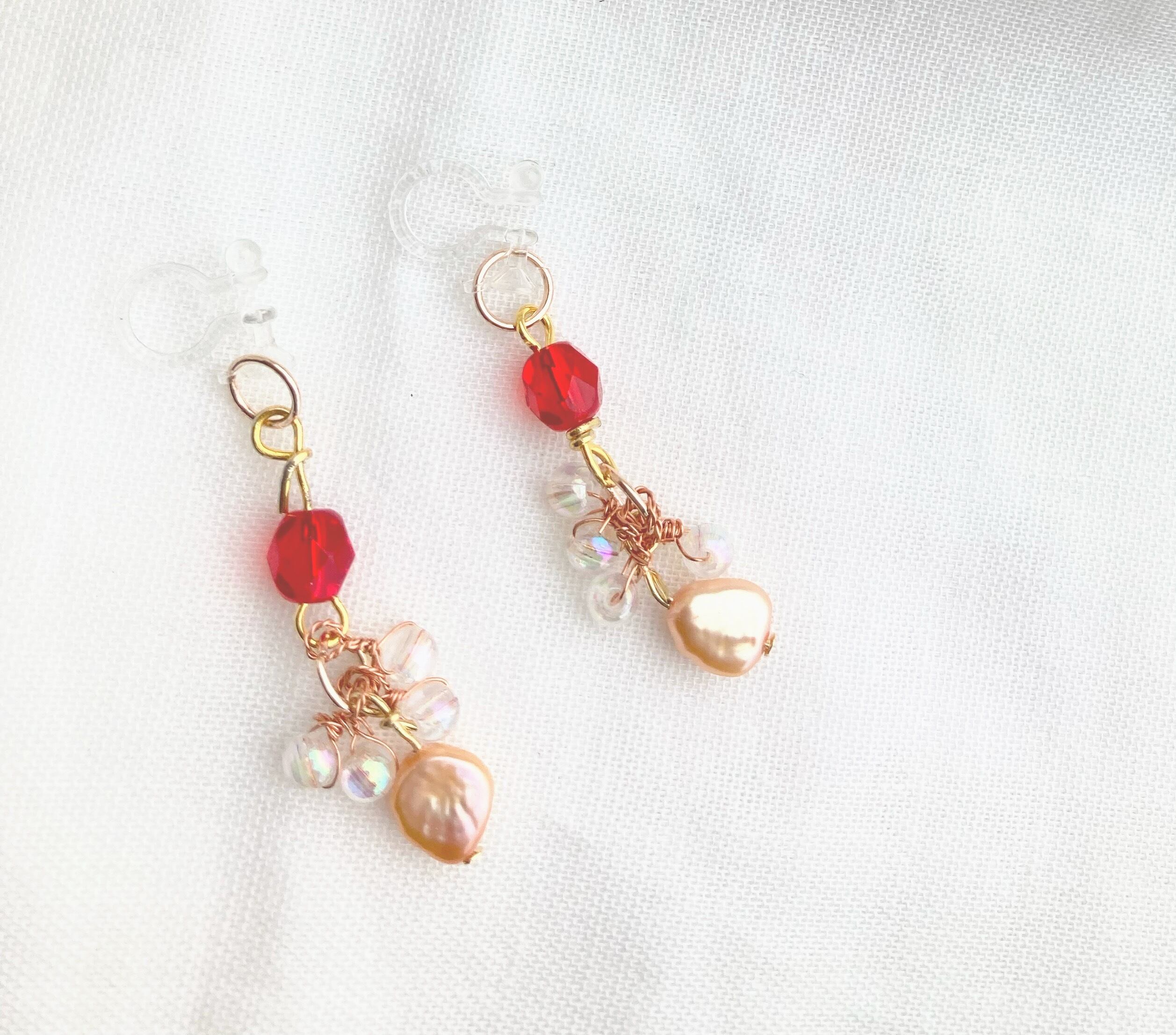 淡いピンクベージュの淡水パールバロックがキュートなアクセサリー♡