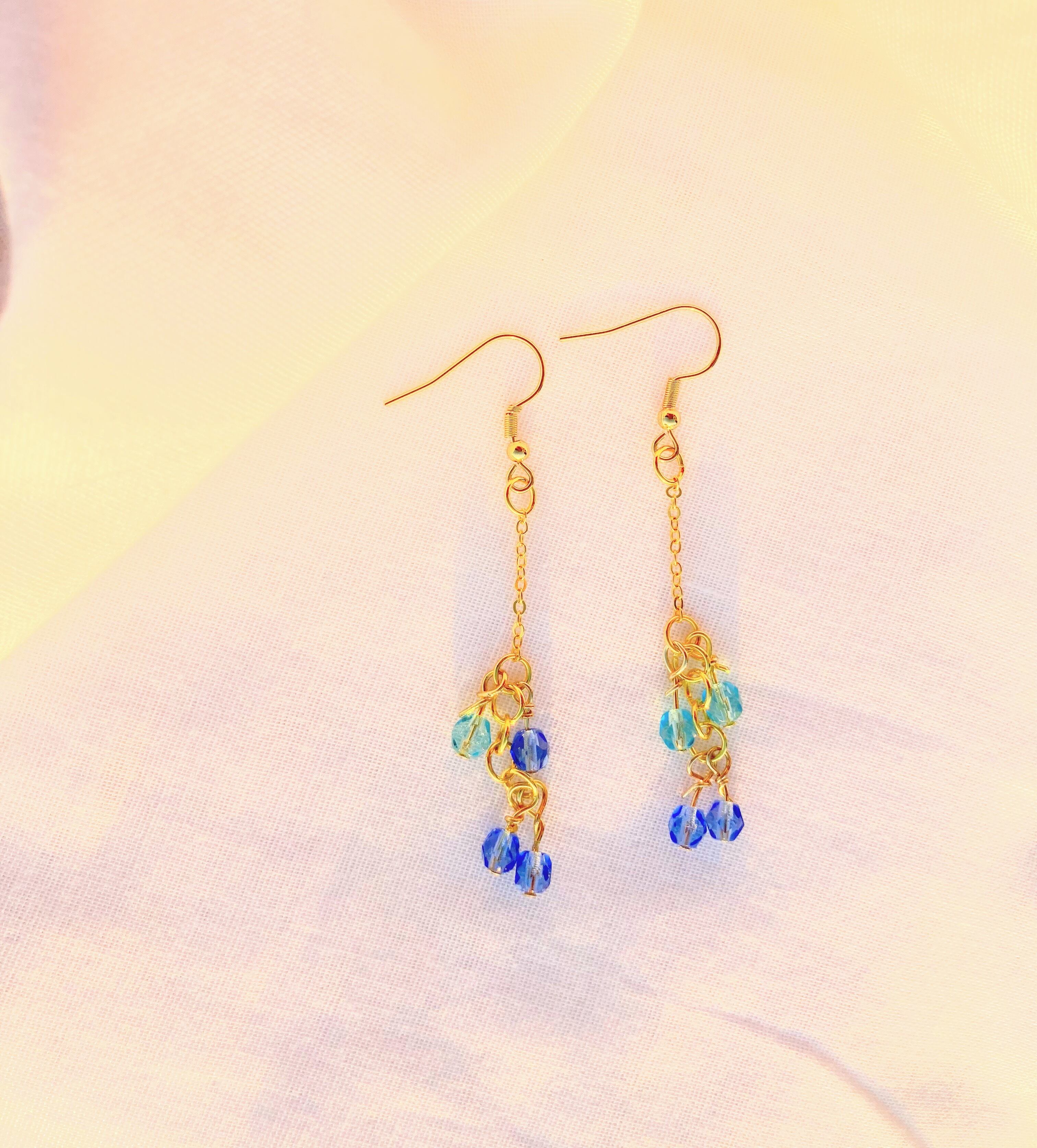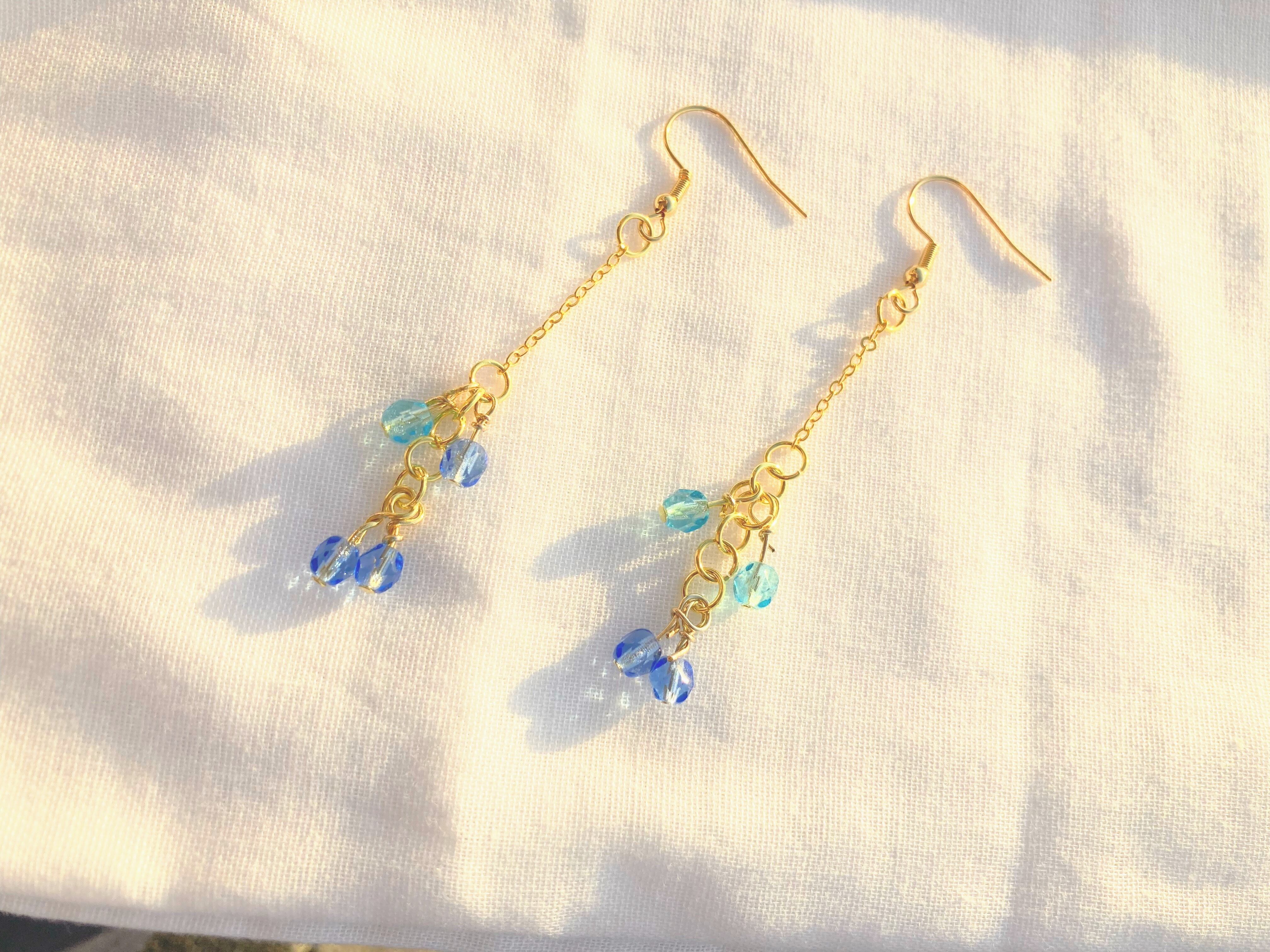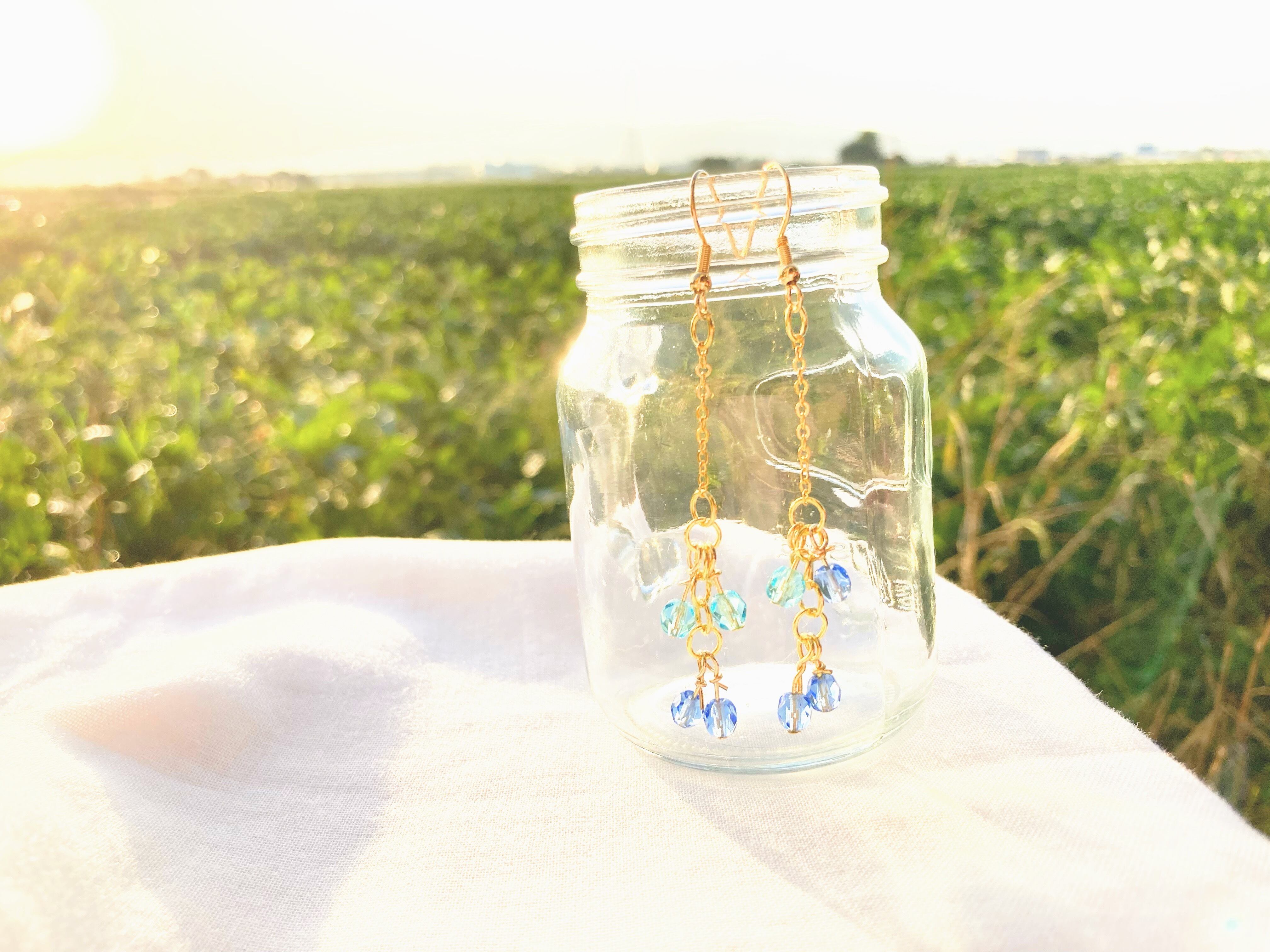 キラキラ輝くスカイブルー系のヘキサゴンカットビーズのアクセサリー