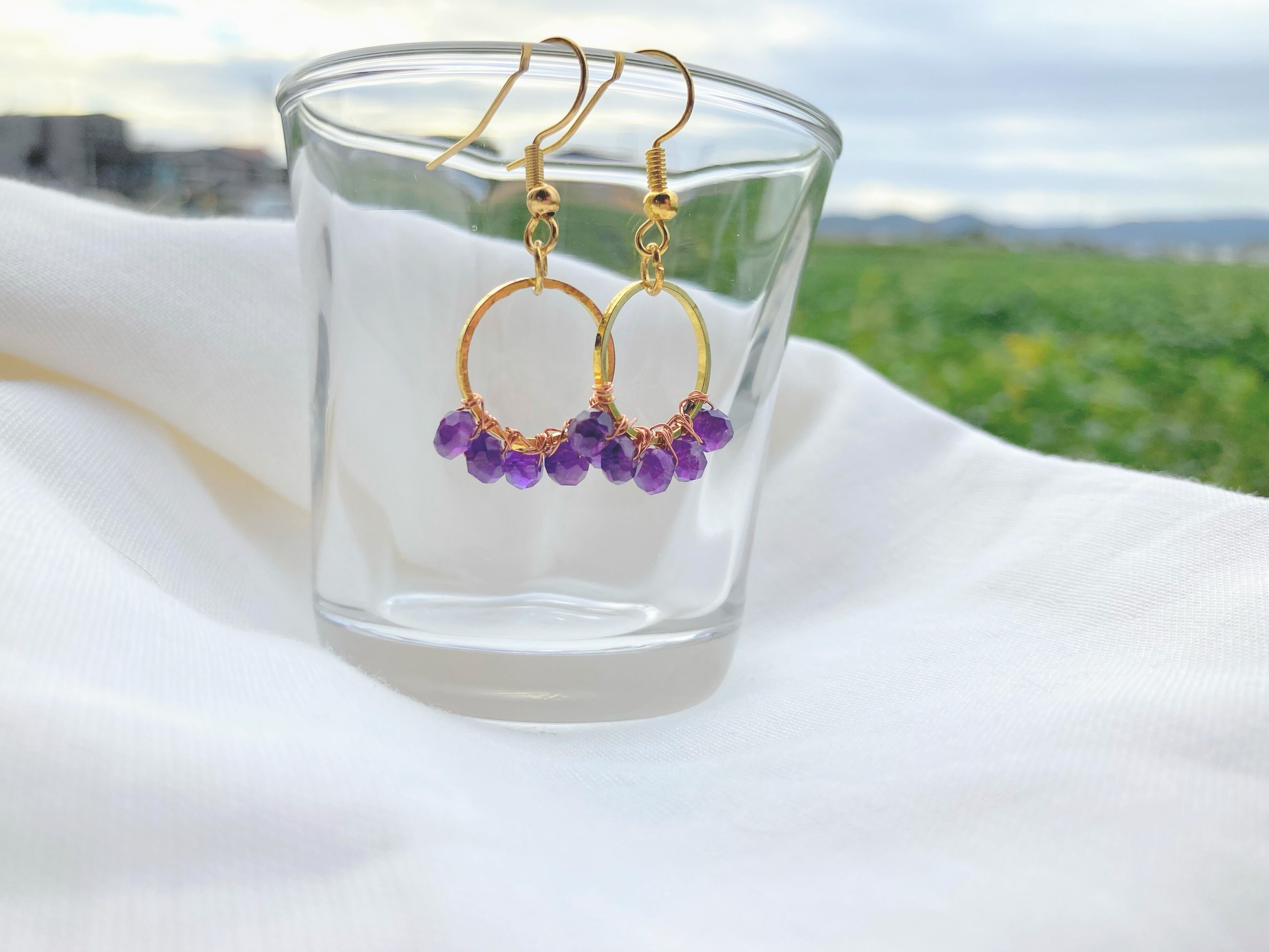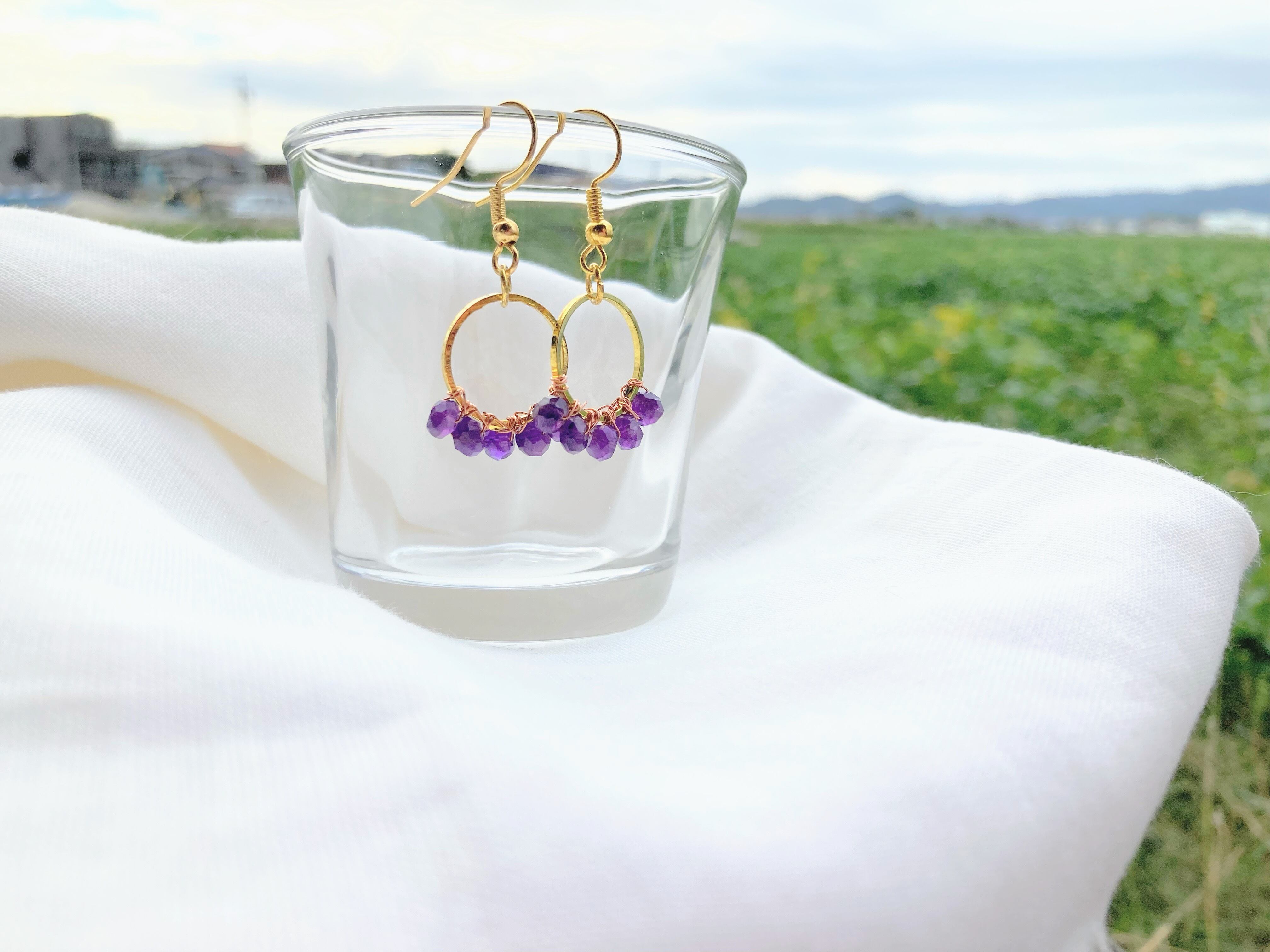 上品な深紫のアメジストのフープアクセサリー