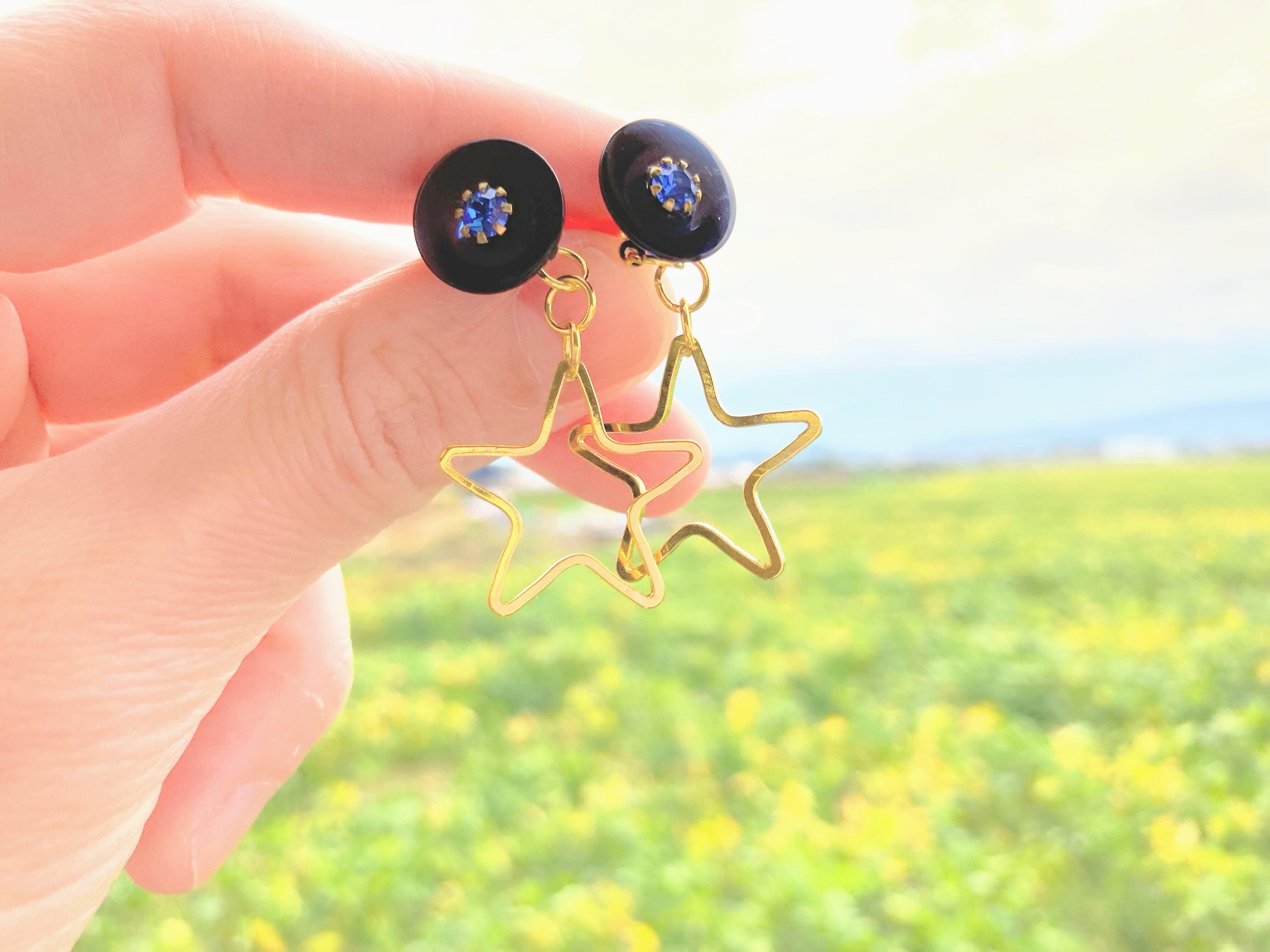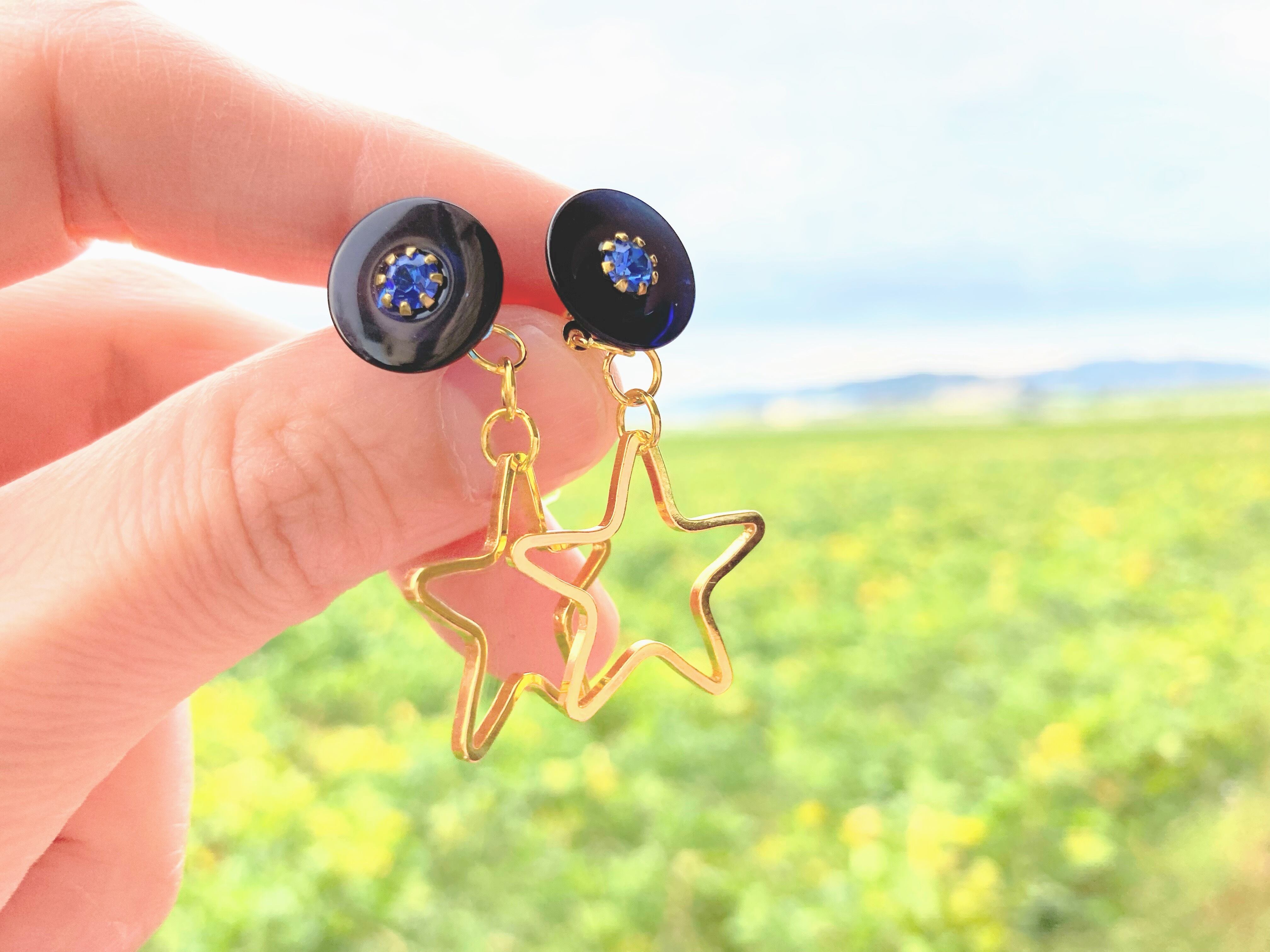 落ち着いたネイビーブルーとゴールドスターで大人かわいいピアスです☆
