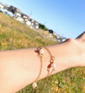 かわいいパールビーズがキラキラ光り、チェーンでさりげなく輝きをアピールできます。