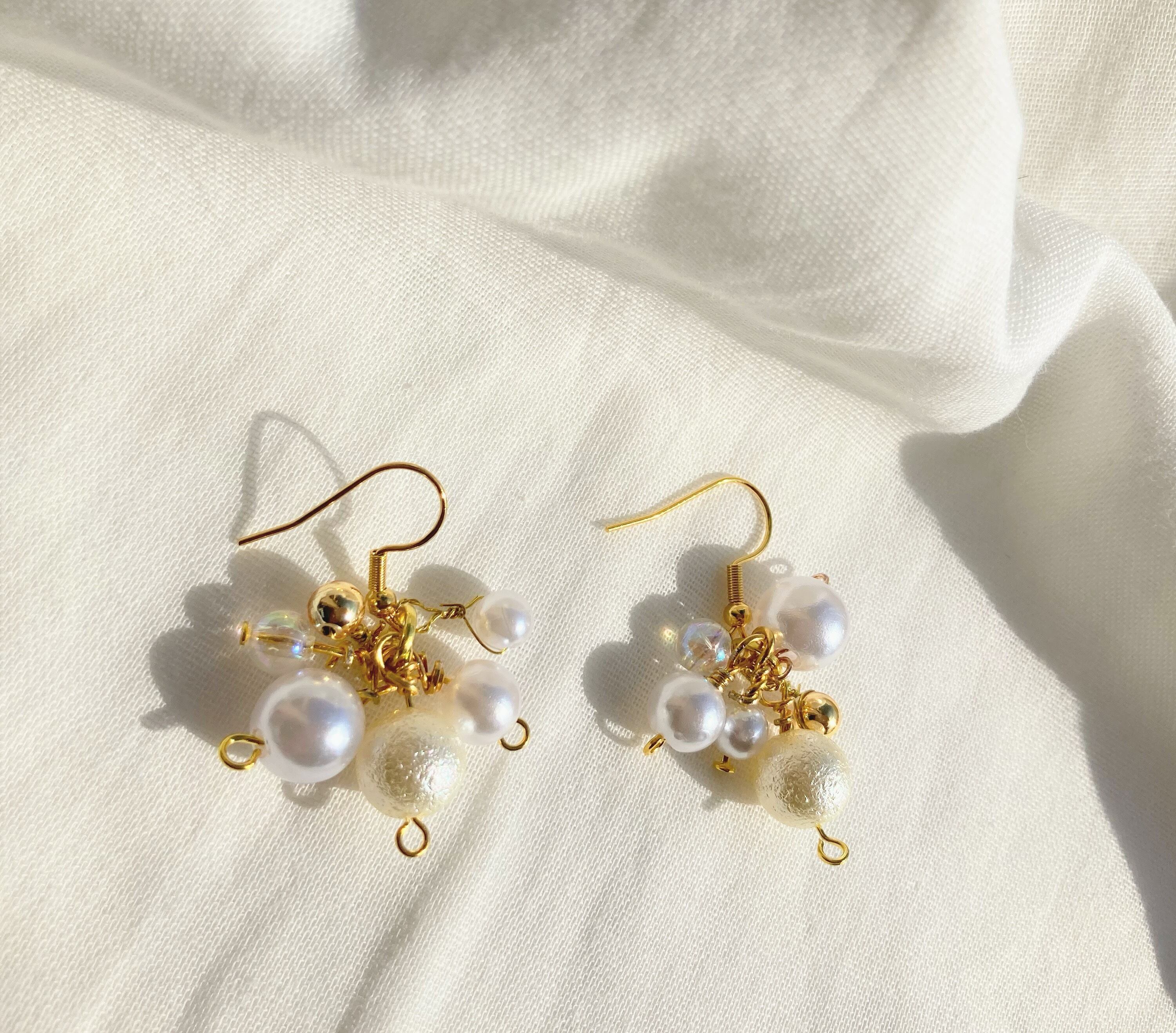 ホワイトパールビーズ・コットンパールビーズ・クリアビーズ・ゴールドビーズが大・中・小いろんな大きさ勢揃い♪