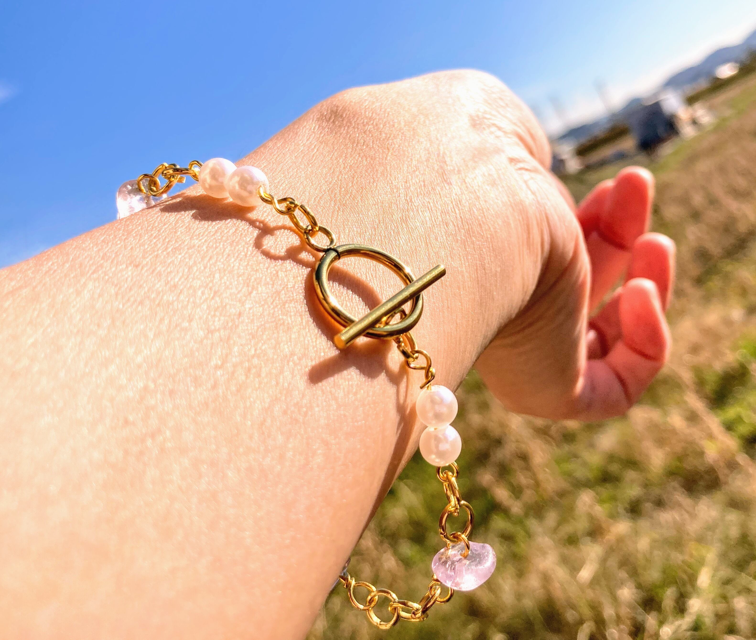 パープルカラーとホワイトの組み合わせが上品で女性らしいブレスレットです♡,