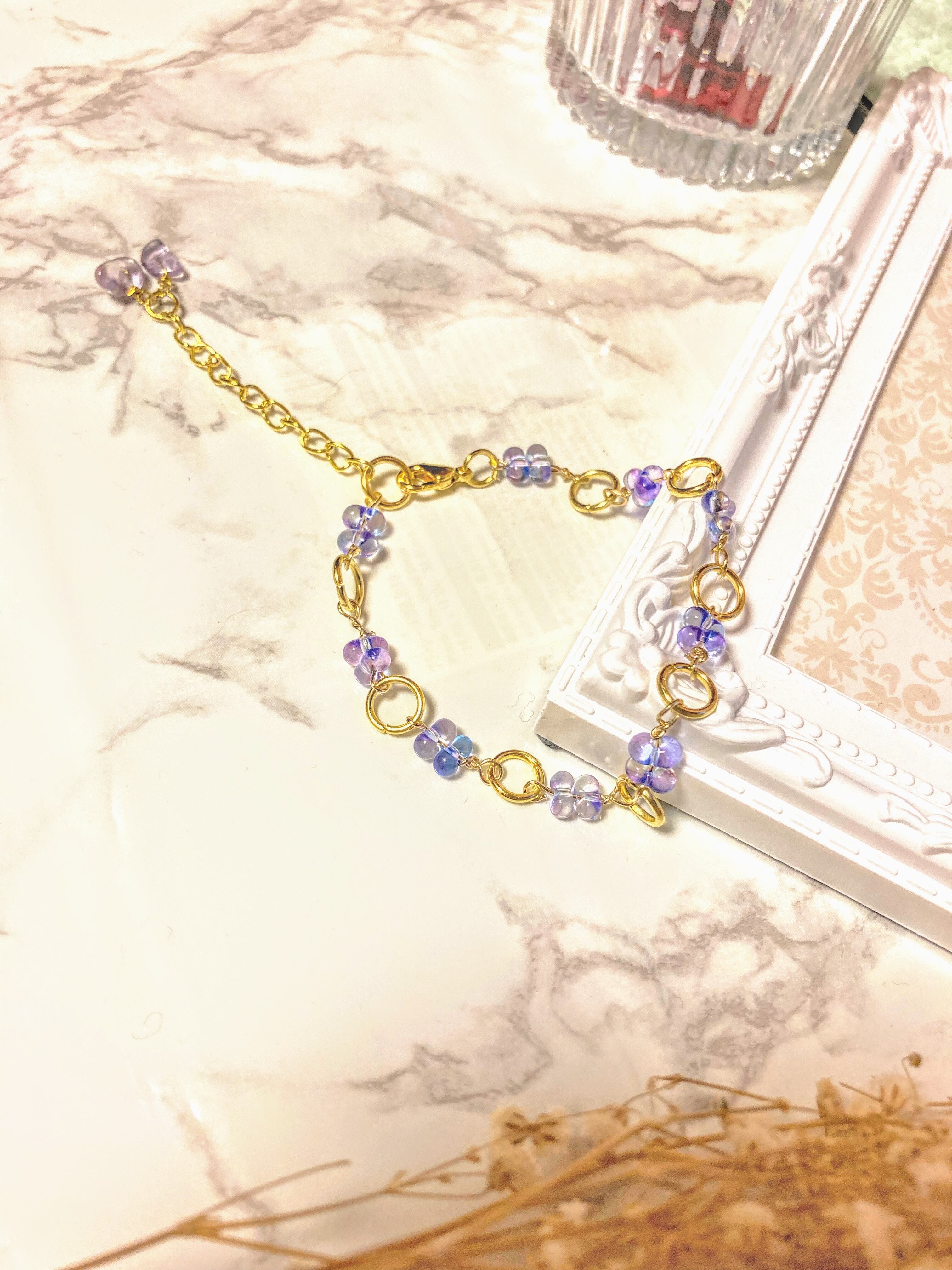 透明感がありツブツブ小粒なチェコビーズブレスレットです。