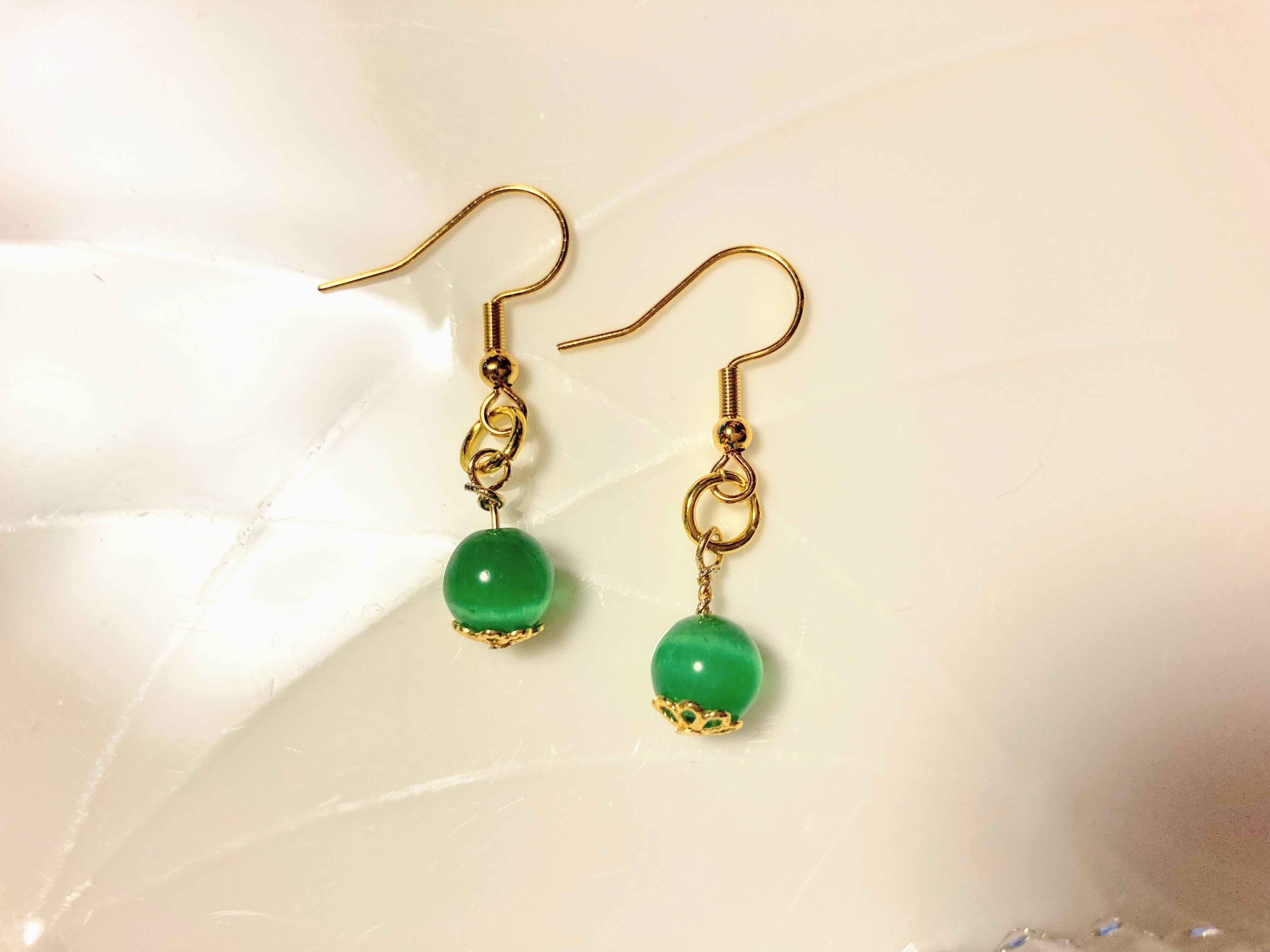 半透明のグリーンがとても美しいピアス♡ ※ シンプルデザインで女の子らしいアクセサリーです。 ※ 【サイズ】グリーンキャッツアイ直径8mm ※ お気軽にDM下さいね♪