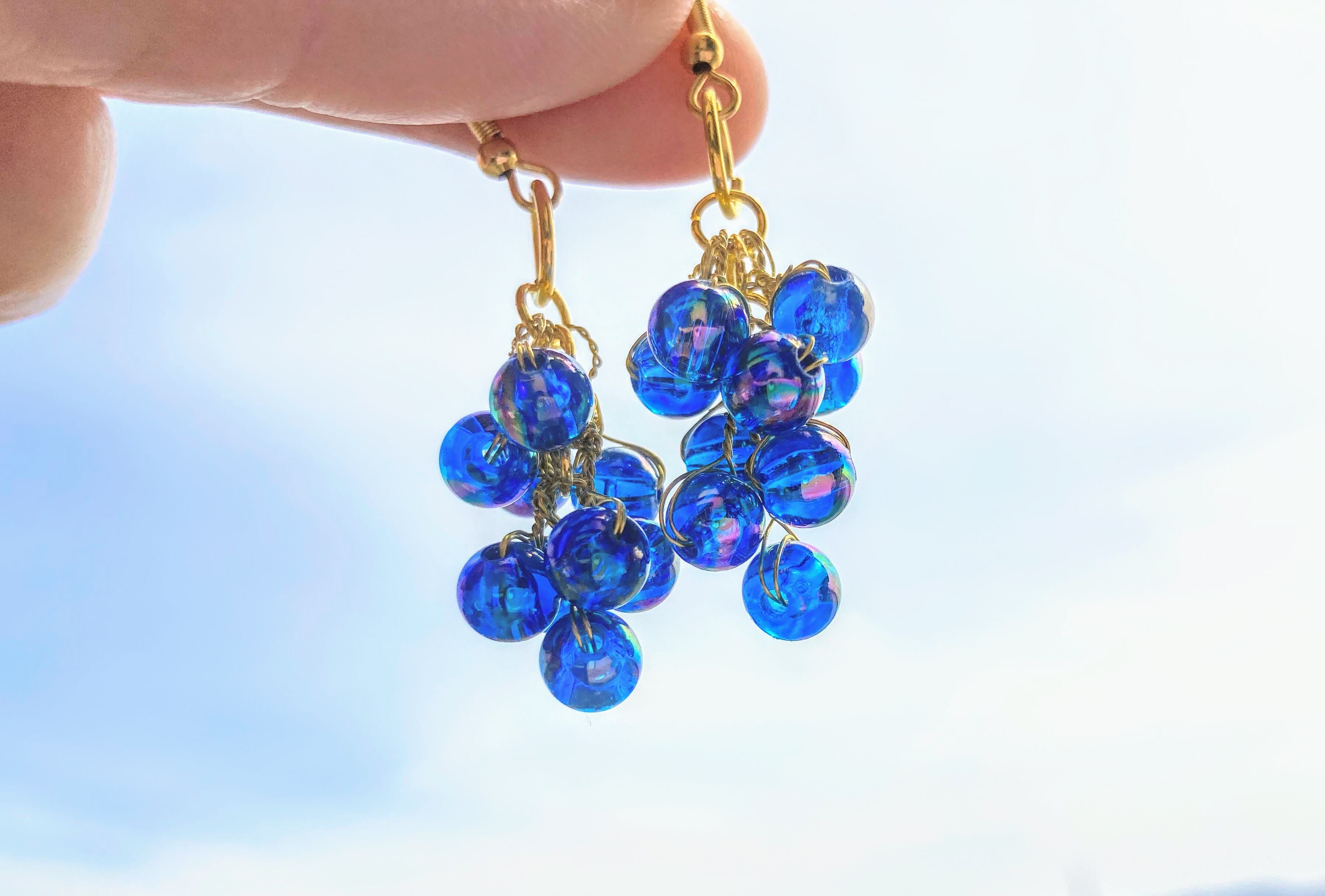 青い海のような美しいツブツブのビーズピアス