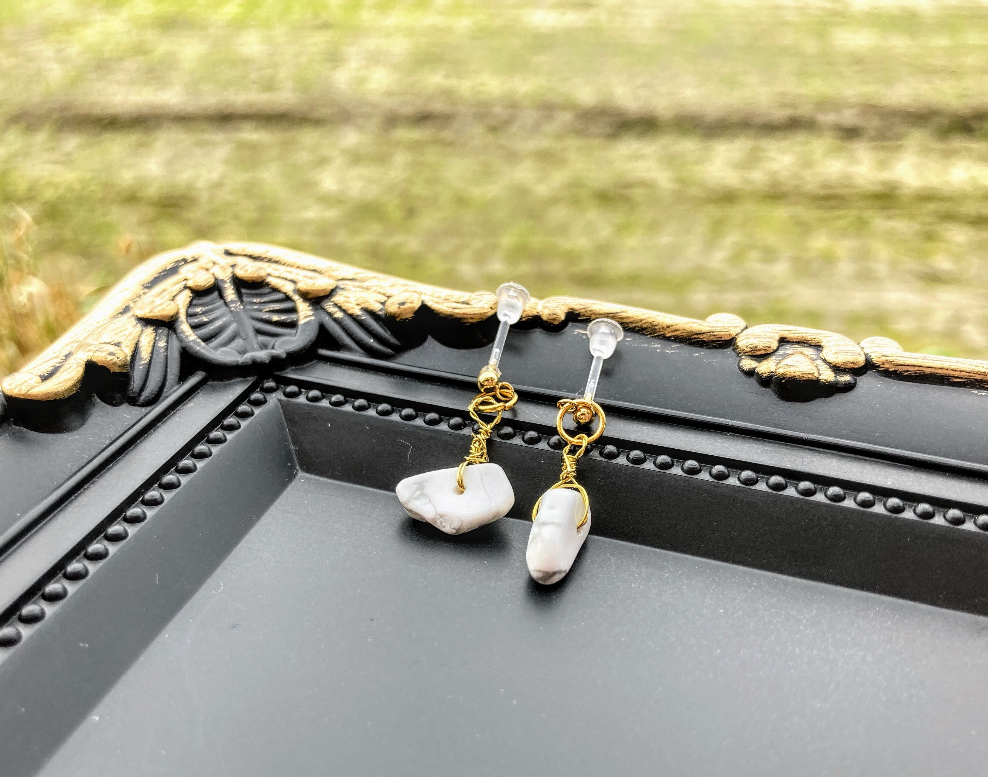 さざれ石のシンプルなデザインなので日常やお出かけにさりげなくつけられます♡