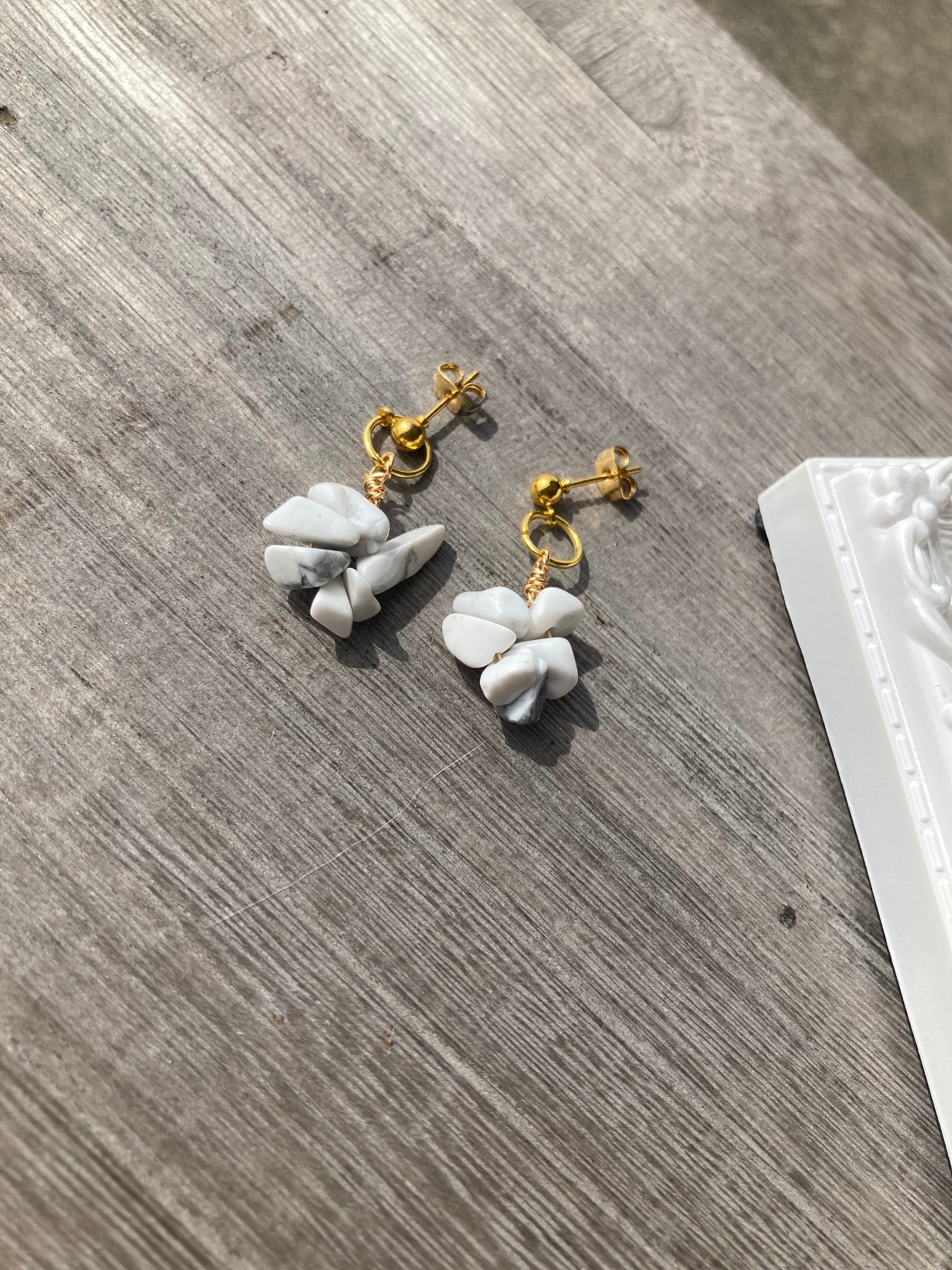 さざれ石のハウライトが丸っと集まったデザインのアクセサリー♪
